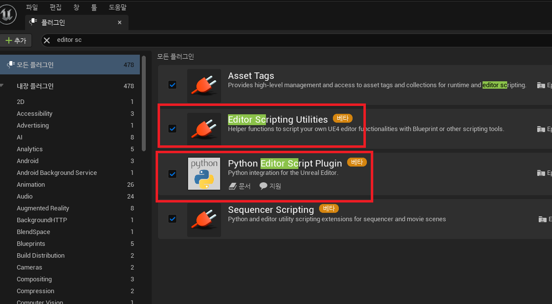 언리얼에서는 플러그인 2개를 활성화해주어야 한다.