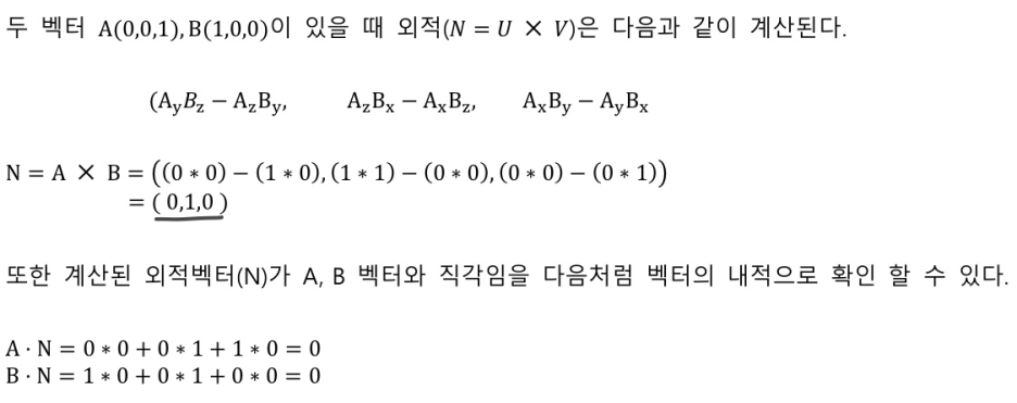 벡터의 외적은 두 벡터의 직교인 벡터를 구할 수 있다.