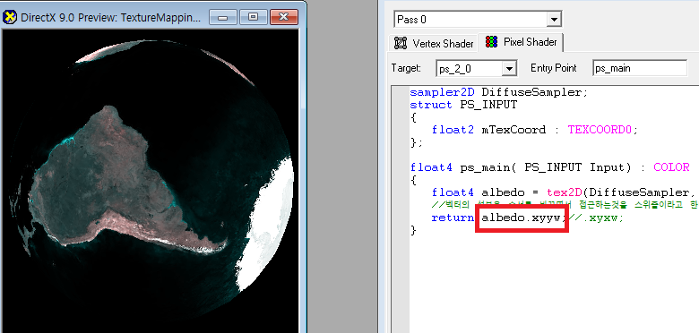 빨간공를 출력하고 그 다음은 챕터3에서 텍스쳐에서 텍셀을 구해오는 샘플러 데이터형과