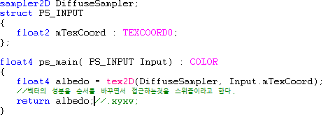 변수로 만들었던 DiffuseSampler는 HLSL에서 지원하는 데이터형으로