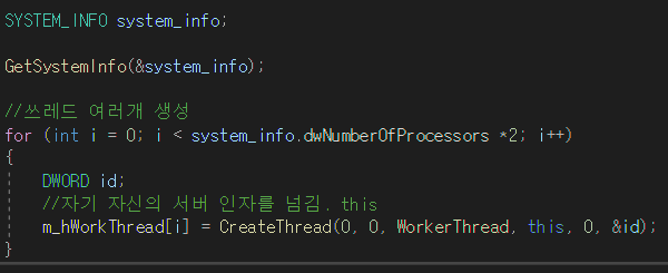 처음 IOCP 객체 핸들 생성할때는 이런 식으로 생성한다.