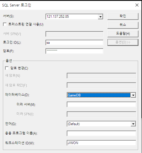 정보를 입력해, 데이터베이스 서버에 연결할 수 있다.