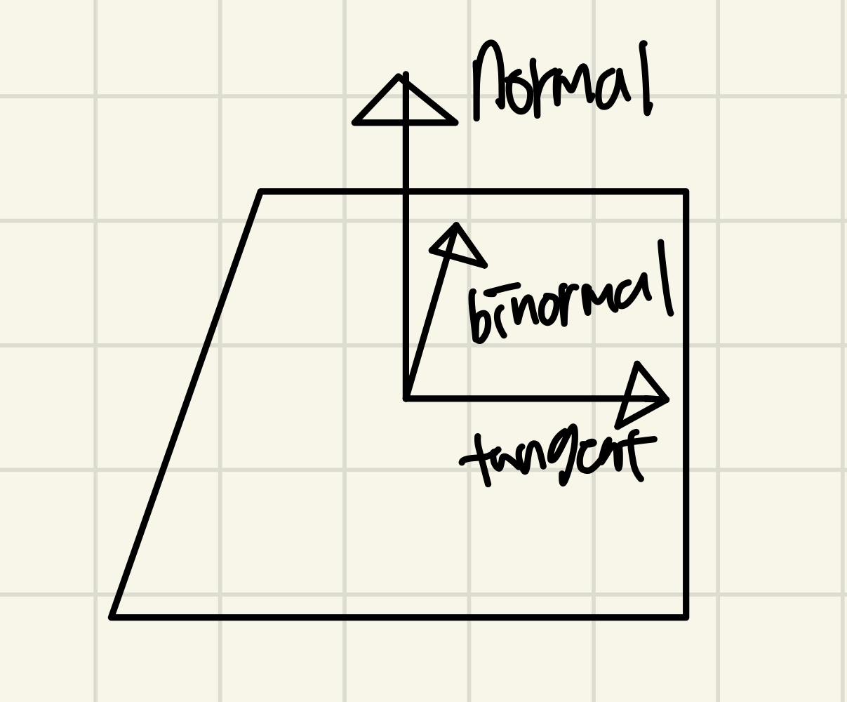 변환을 하기 위해서는 TBN(tangent, binormal, normal) 행렬을 만들어야 한다.
