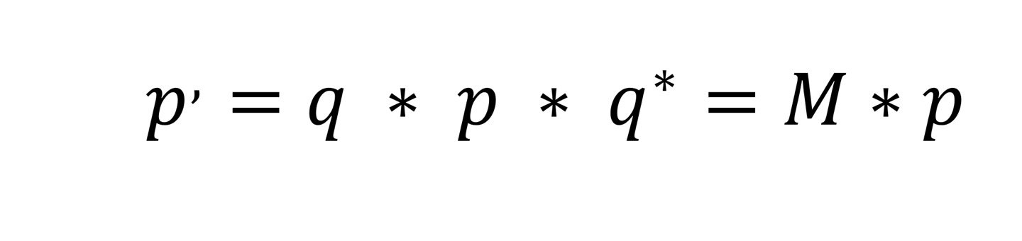 단위 사원수와 공액 사원수를 앞뒤로 곱해 서서 결과를 얻을 수 있다.