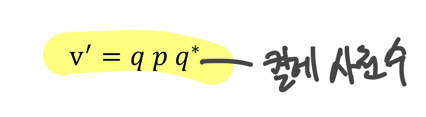 임의의 정점 v를 사원 수로 회전하기 위해서는 공액 켤레 곱셈(Conjugate Product)