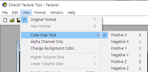 View 탭에서 여러 방향의 큐브 맵 면을 선택할 수 있다.