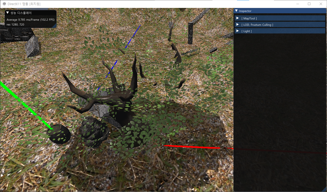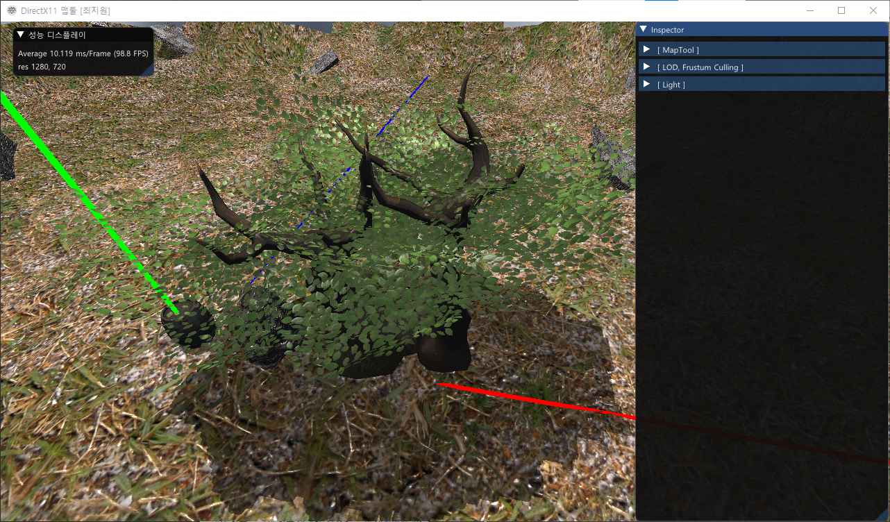 위는 본인 다이렉트 엔진에서 나무잎을 그리는 사진으로